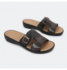 يُعد هذا النعال خيار مثالي للإستخدام اليومي, من الجلد الصناعي بخامة من جلد الأفعى، ذو جودة عالية, وأرضية مدعمة مريحة