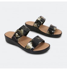 استمتعي بمفهوم جديد من الراحة مع نعال طبي عالي الجودة بحزامين بخامة من جلد الأفعى من تورينو. كما يتميز بجودته العالية، اطلبيه الآن من موقعنا الإلكتروني.