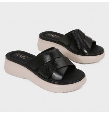 يُعد هذا النعال خيار مثالي للإستخدام اليومي , ذو تصميم عصري بخامة من الجلد الصناعي اللامع، وأرضية مدعمة مريحة