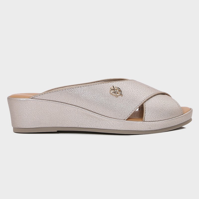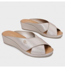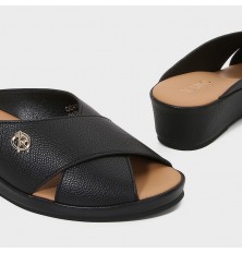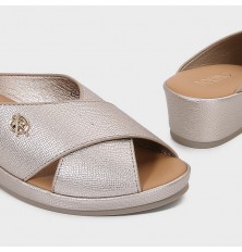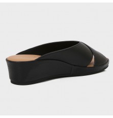 نعال طبي ذو تصميم عصري، مقدمة مستديرة مزينة ببروش حرف R, سهل الإرتداء، ويمكن تنسيقه مع إطلالات مختلفة