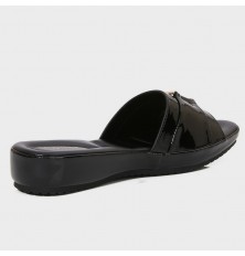 نقدم لكِ نعال طبي مريح، ذو تصميم أنيق بخامة من الجلد الصناعي اللامع مزين باكسسوار ناعم، مناسب للإستخدام اليومي