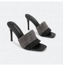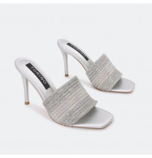 نقدم لكِ هذا النعال ذو كعب 9 سم , بتصميم أنيق مرصع بالكريستال ومقدمة مربعة , يعتبر خيار مثالي للحفلات ومناسباتك الخاصة