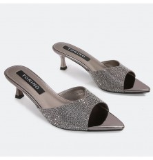 ZXQ1716 نعال كعب قصير مزين بالستراس الناعم