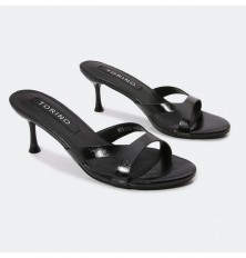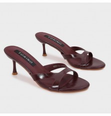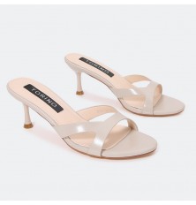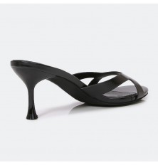 هذا النعال مناسب لإطلالتك اليومية، ذو كعب 5 سم رفيع، ومقدمة مستديرة بخامة من الجلد الصناعي