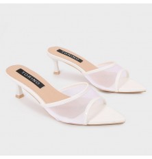 ZXQ1805 نعال كعب ذو مقدمة مدببة بجزء من التول