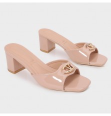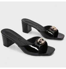 لا غنى عن هذا النعال ضمن تشكيلة أحذيتك، ذو كعب عريض 5سم ومقدمة مربعة مزينة باكسسوار، بألوان لامعة كلاسيكية، مناسب لكافة الأوقات