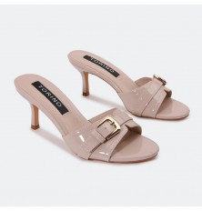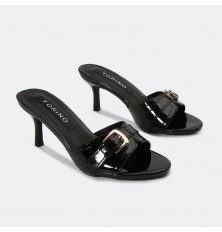 MXQ1872 نعال كعب من الجلد اللامع مع إبزيم مدعم