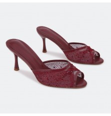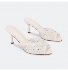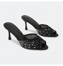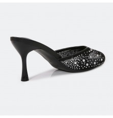 QXQ1960 نعال كعب بخامة من التول المزين بالستراس