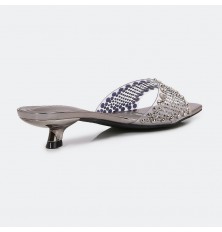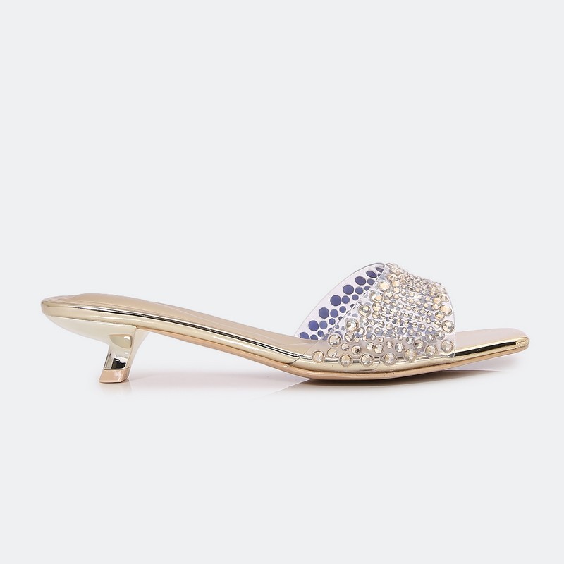 نقدم لكِ هذا النعال من تورينو, ذو كعب 3 سم وجزء أمامي شفاف مزين بالستراس, أنيق ومناسب لكافة الأوقات