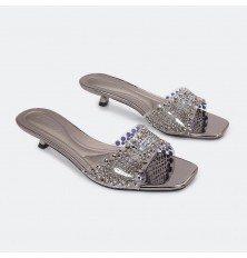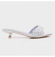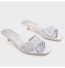ZXQ1727 نعال كعب قصير بجزء شفاف مرصع بالستراس