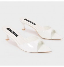 بتصميم أنيق وعملي يعتبر هذا النعال خيار رائع لإطلالتك اليومية، ذو كعب 5 سم, خامة من الجلد الصناعي اللامع مع مقدمة مدببة