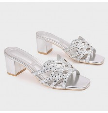 ZXQ1893 نعال كعب لامع ذو مقدمة مربعة مزينة بالستراس