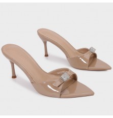 QXQ1953 نعال كعب لامع مزين بإكسسوار