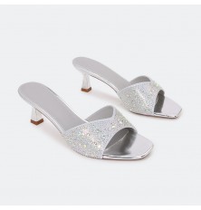 HXQ507 نعال كعب لامع مزين بالستراس