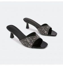 نقدم لك هذا النعال من تورينو، ذو كعب 5 سم وتصميم لامع مزين بالستراس، متوفر بألوان كلاسيكية ، مناسب لكافة الأوقات