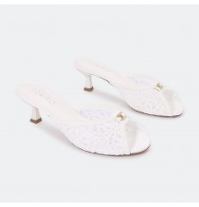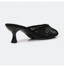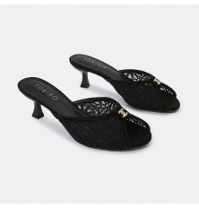 سيصبح هذا النعال المفضل لديك، ذو كعب 4 سم وتصميم بجزء من التول مزين ببروش، يمكن تنسيقه مع خيارات مختلفة