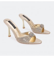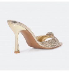لا غنى عن هذا النعال في تشكيلة أحذيتك , ذو كعب 9سم أنيق ولامع, مزين بالستراس مع اكسسوار ناعم براق، متوفر بألوان لا غنى عنها