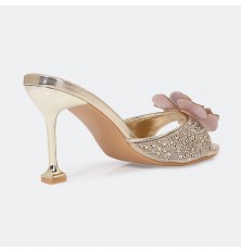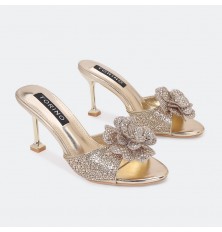 WXQ2083 نعال كعب مزين بالورود المرصعة بالستراس