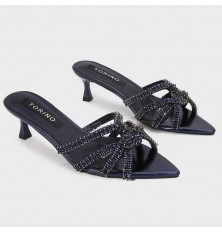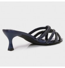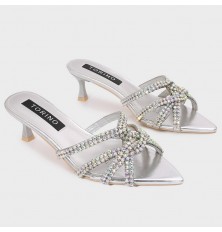 نقدم لكِ هذا النعال ذو كعب 5سم, وتصميم لامع و فخم ذو مقدمة مدببة من حبال الكريستال, متوفر بألوان لا غنى عنها