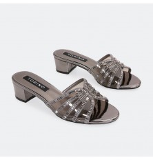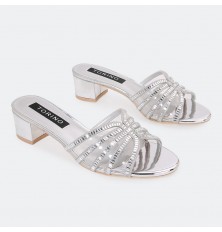 سيصبح هذا النعال بكعب عريض 3سم المفضل لديكِ , ذو مقدمة مستديرة , شفاف مزين بالستراس, مناسب لكافة الأوقات