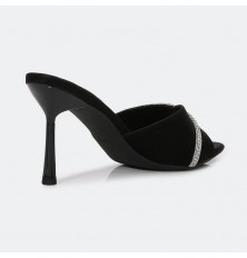 نقدم لك هذا النعال من تورينو، ذو مقدمة مستديرة و كعب رفيع 7 سم، مزين بحبل كريستال ، ذو ألوان لا غنى عنها، يمكن تنسيقها مع إطلالات مختلفة