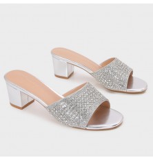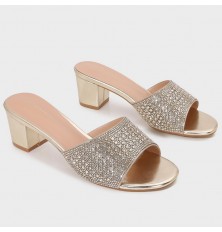 BXQ2127 نعال كعب عريض مزين بالستراس