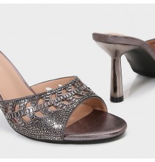 سيصبح هذا النعال المفضل لديك، ذو كعب 7سم ومقدمة مستديرة مفرغة ومزينة بالستراس، يمكن تنسيقه مع إطلالات مختلفة