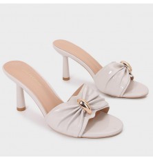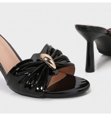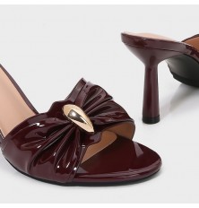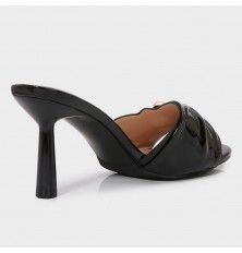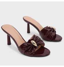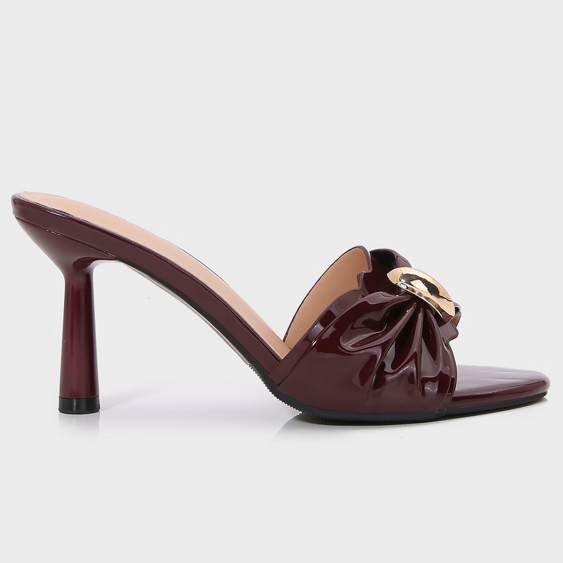 نعال كعب 7 سم , يجمع بين الراحة والأناقة بخامة من الجلد الصناعي اللامع بتصميم مميز مزين ببروش ذهبي, مناسب لكافة الأوقات
