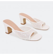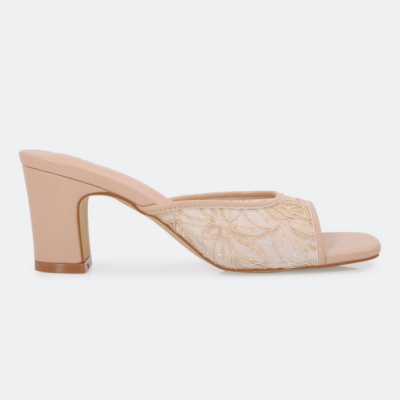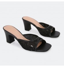 BXQ2146 نعال كعب ذو مقدمة مربعة بجزء من التول