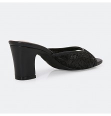 تألقي مع هذا النعال من تورينو بكعب عريض 5سم, تصميم فخم ذو مقدمة مربعة بجزء من التول، مناسب لكافة الأوقات