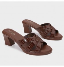 OXQ2094 نعال كعب عريض بنقشة جلد الأفعى