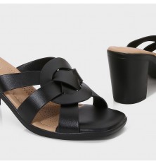 نعال مريح بتصميم أنيق، ذو كعب 6 سم، مقدمة مربعة على شكل شرائط متداخلة، متوفر بألوان يمكن تنسيقها مع خيارات مختلفة