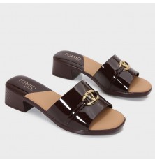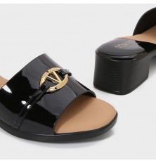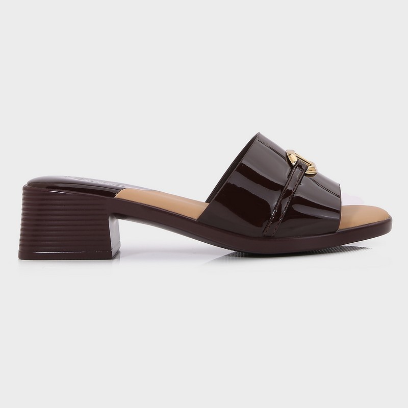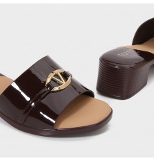 نقدم لكِ في متجر تورينو نعال كاجوال نسائي بكعب 3 سم، خامة من الجلد الصناعي اللامع مزين بإكسسوار ذهبي، مناسب للإستخدام اليومي