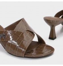 بتصميم أنيق وعملي نقدم لكِ هذا النعال, ذو كعب 5 سم وتصميم مميز بنقشة جلد الأفعى مزين ببروش ناعم, مريح ويمكن تنسيقه مع إطلالات مختلفة