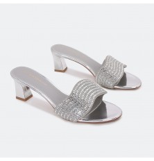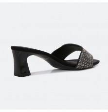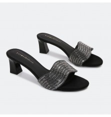 لا غنى عن هذا النعال ضمن تشكيلة أحذيتك، ذو كعب 5سم، ومقدمة مستديرة مزينة بالستراس، بألوان لامعة كلاسيكية، مناسب لكافة الأوقات