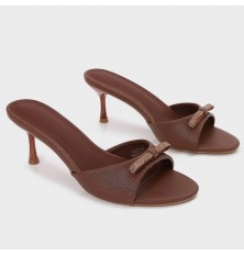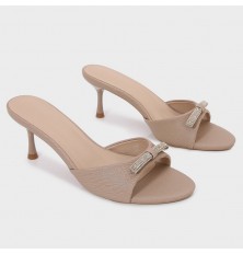 QXQ2155 نعال كعب ذو مقدمة مستديرة مزين بفيونكا