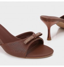 يعتبر هذا النعال مناسب لإطلالتك اليومية، ذو كعب أنيق 6 سم ، خامة من الجلد الصناعي بمقدمة مفتوحة مستديرة مزينة بفيونكا، متوفر بألوان لا غنى عنها