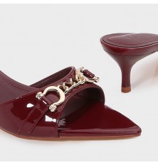 نقدم لك هذا النعال من تورينو، ذو كعب لامع 4 سم و مقدمة مدببة مزينة بإكسسوار، ألوان كلاسيكية ، مناسب للاستخدام اليومي