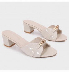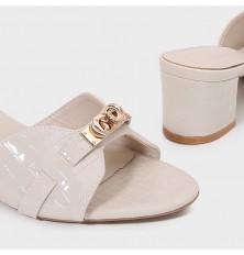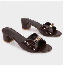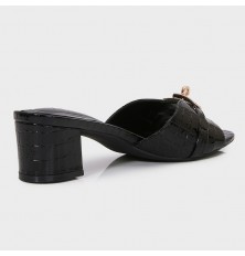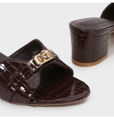 نقدم لكِ هذا النعال من تورينو , ذو كعب عريض 4 سم، ذو مقدمة مستديرة بنقشة جلد الأفعى مزينة بإكسسوار ذهبي، مناسب للإستخدام اليومي