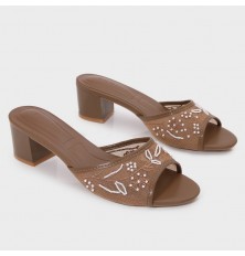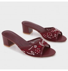 QXQ2165 نعال كعب ذو مقدمة بخامة من التول المطرز
