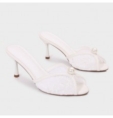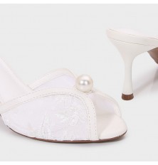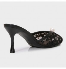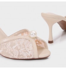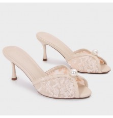 لا غنى عن هذا النعال ضمن تشكيلة أحذيتك , تصميم أنيق بخامة من الدانتيل , مزين بحبة لؤلؤ, ذو كعب 7سم متوفر بألوان لا غنى عنها