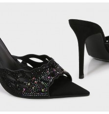أضيفي الأناقة لإطلالتك مع هذا الكعب 9 سم، بتصميم جذاب، ذو مقدمة مدببة مزينة بالستراس الملون، يمكن تنسيقه مع خيارات مختلفة