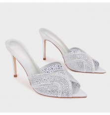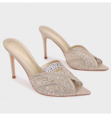 QXQ2385 نعال كعب رفيع بجزء من التول