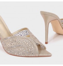 تألقي مع هذا النعال من تورينو بكعب 9 سم, تصميم فخم بجزء من التول المزين بالستراس اللامع, مناسب للحفلات، متوفر بألوان يمكن تنسيقها مع خيارات مختلفة