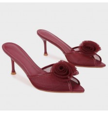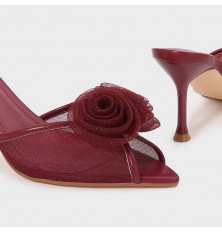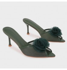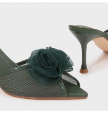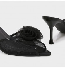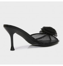 تألقي مع هذا النعال من تورينو، ذو كعب 7 سم رفيع، ومقدمة مدببة بخامة من التول مزينة بوردة ، يمكن تنسيقه مع خيارات مختلفة