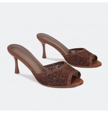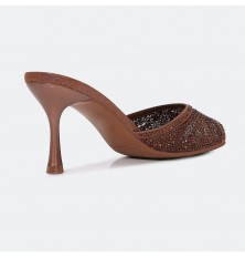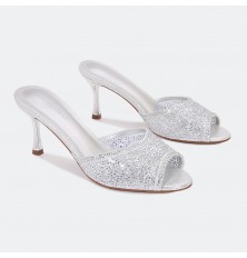 تألقي مع هذا النعال من تورينو بكعب رفيع 7سم, تصميم فخم بجزء من التول المزين بالستراس اللامع, مناسب للأوقات المسائية