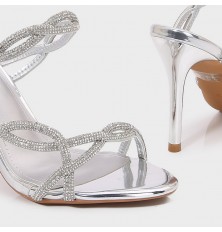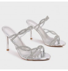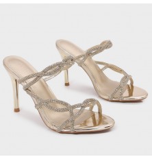 QXQH9 نعال كعب شيك مزين بحبال الكريستال البراقة