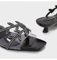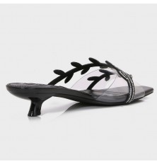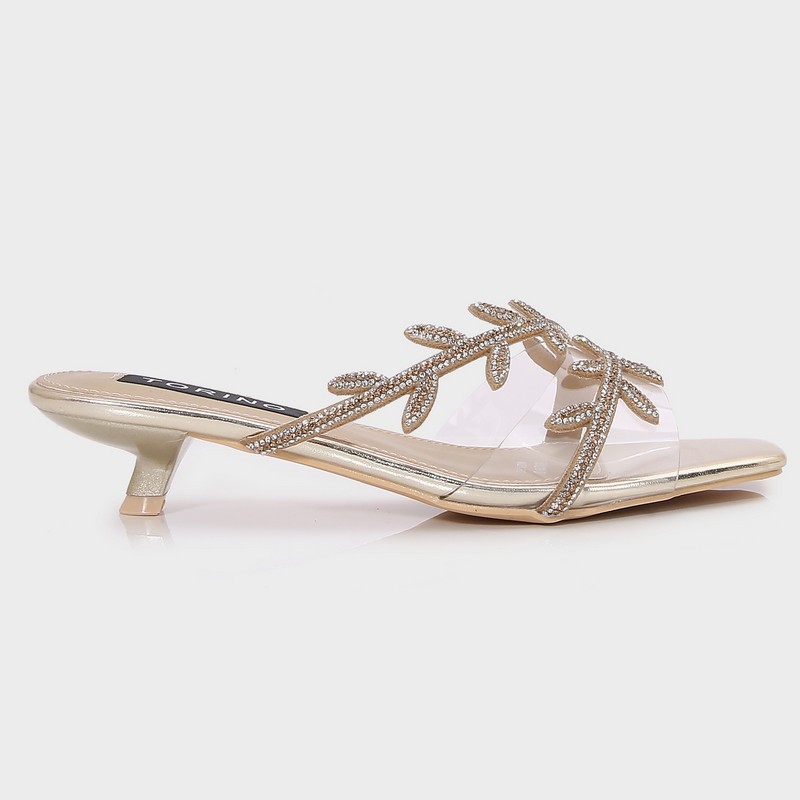 أضيفي الأناقة لإطلالتك مع هذا الكعب 2 سم، ذو مقدمة مربعة بجزء شفاف وتصميم جذاب بحبال مزينة بالكريستال على شكل أغصان، يمكن تنسيقه مع خيارات مختلفة