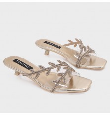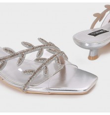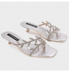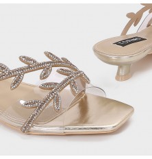 ZXQ2191 نعال كعب قصير مزين بحبال من الكريستال على شكل أغصان