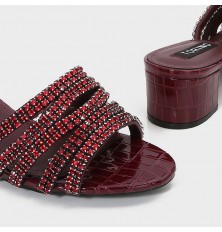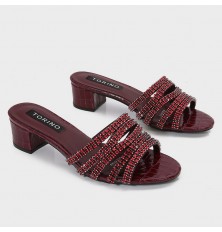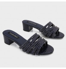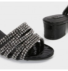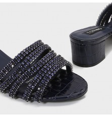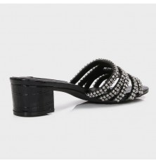 يجمع هذا النعال بين الراحة و الأناقة , تصميم من شرائط مزينة بالكريستال , ذو كعب 4 سم , يمكن تنسيقه مع إطلالات مختلفة
